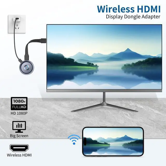 Stunning HD Experience: Our wireless HDMI display dongle adapter supports 4K decoding and delivers an impressive 1080P Full HD output. Seamlessly switch to a larger screen and enjoy high-quality audio and video content with friends and family ^^