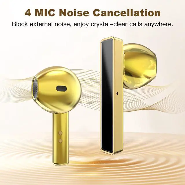 The lightweight construction ensures long-lasting comfort whether youre working, commuting, traveling, exercising, or relaxing at home. Designed for women, professionals, and music lovers who seek both style and comfort in every moment. ^^ Hi-Fi Sound & Smart Noise Cancelling Equipped with 13mm high-fidelity dynamic drivers, these bluetooth earbuds deliver a rich and immersive audio experience with deep bass, full midrange, and crystal-clear treble. The smart noise cancelling system, powered by dual microphones and advanced algorithms, filters background noise and enhances voice clarity for a truly immersive listening experienceperfect for music, calls, or daily focus.