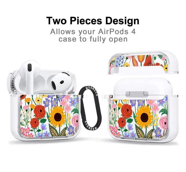 MOSNOVO Case for Airpods 4, Protective Clear Case with Shockproof Dual Layer Hard Luxe Metal Ring Designed for Airpods 4 Generation - Blossom & Bloom