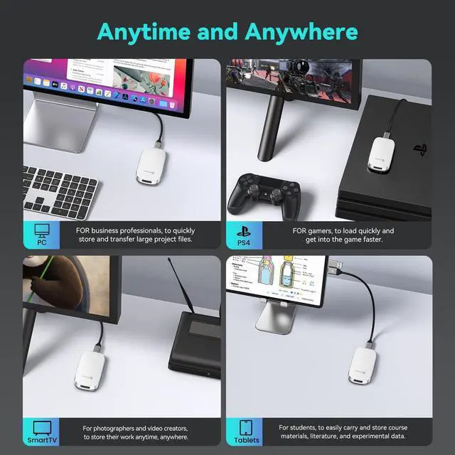 PHIXERO 2TB Portable SSD, Type-C Interface, Up to 450Gbps, Built-in mSTAT SSD for Ultra-Fast Data Transfer,White