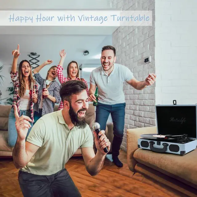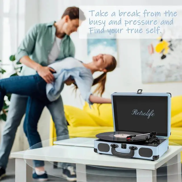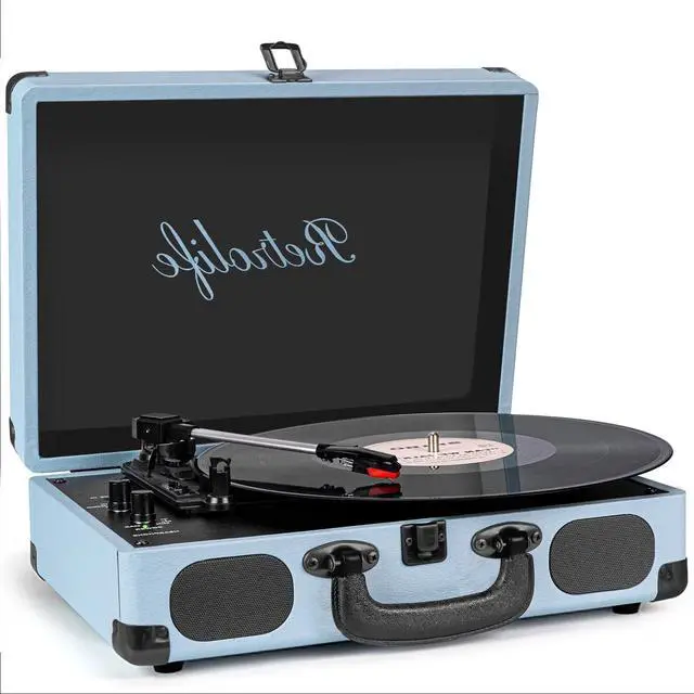 Retrolife Individual Suitcase Record PlayerA modern meets vintage design with black classic PU leather exterior, retro bronze metal screws and mesh grilles, plus a sturdy carry handle for portability. Ready to help you create your own music memories