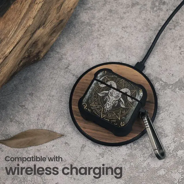 Patterit for AirPods 4 Case (2024) (USB-C), Shockproof Cover with Quick Released Keychain, Compatible with AirPods 4th Generation, Natural Wood Hand-Drawn (Baphomet Seal) Dark Wood