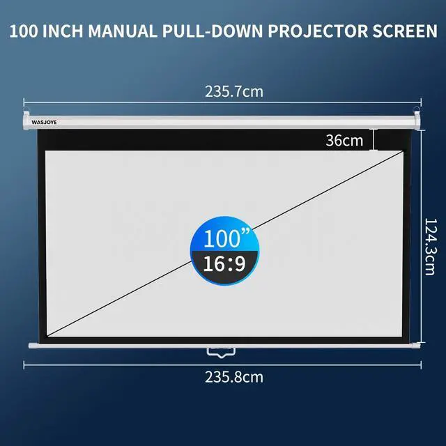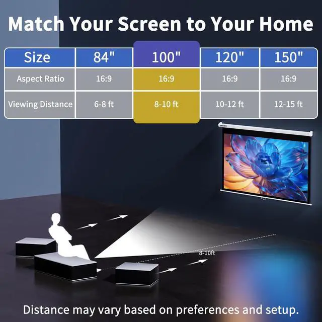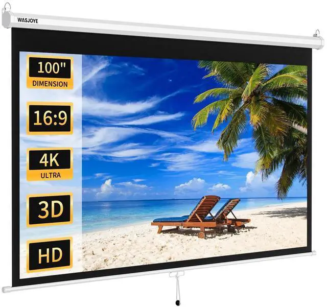 Visual Feast: The 100 in retractable projector screen unique performance ensures that each incident light is evenly reflected; up to 178 panoramic viewing angle, 16:9 1.2 high gainthe screen supports 3D, 1080P, 4K, Full HD picture quality. It is recommended to use a medium-to-long focal length projector ^^