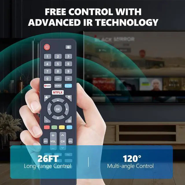 Easy To Use: New ABS material, better craftsmanship, and ergonomic arc design ensure easy to hold. The keys are responsive and feel great to touch. With a control distance of over 26 feet and an angle of more than 120 degrees, you'll have a better and free remote control experience.