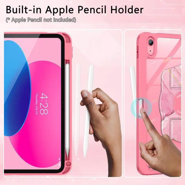 Number: A2696/ A2757/ A2777 / A3162) ^^ [Faux Leather & Transparent Clear Back] - Faux Leather with delicate touch, stain-resistant and washable. Crystal clear hard PC back with TPU frame prevents your new iPad a16 11th/10th Gen from scratching and bumping, offers full body protection ^^ [360 Degree Rotating] - This case for iPad a16 2025 can swivel both vertically and horizontally, non-slip lining material and grooves can set up multiple stand angles stably to reach your most comfortable viewing or typing ^^ [Built-in Pencil Holder] - No Pen included! Support Pencil Charging and provide pen holder nicely to secure your pencil, you can easily carry and use the apple pencil at any time.