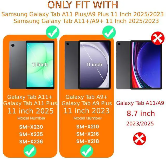 Compatibility: Only fit for Samsung Galaxy Tab A11+ Plus / A9+ Plus 11 inch 2025 2023 (Model: SM-X210/SM-X216/SM-X218/SM-X230/SM-X235/SM-X236). Please check back bottom of your tablet to find the model number (NOTICE: Not fit Galaxy Tab A11/A9 8.7 inch) ^^ 360 All-Round Protection with