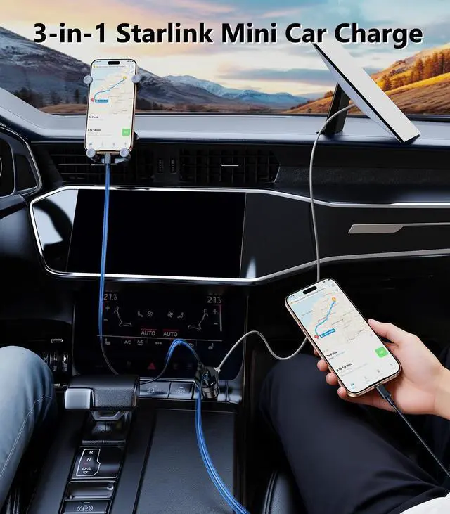 dual fast-charging ports: USB-A 36W + USB-C 18W. Quickly charge phones, tablets, cameras, and more when Starlink is not in use (Note: To maintain Starlink performance, prioritize dedicated power supply during operation and avoid simultaneous high-load usage of other ports). ^^ - Plug-and-Play Operation - Requires no complex setupsimply plug into the cigarette lighter socket to power the Starlink Mini. Ideal for road trips, RV camping, mobile offices, and emergency communications.