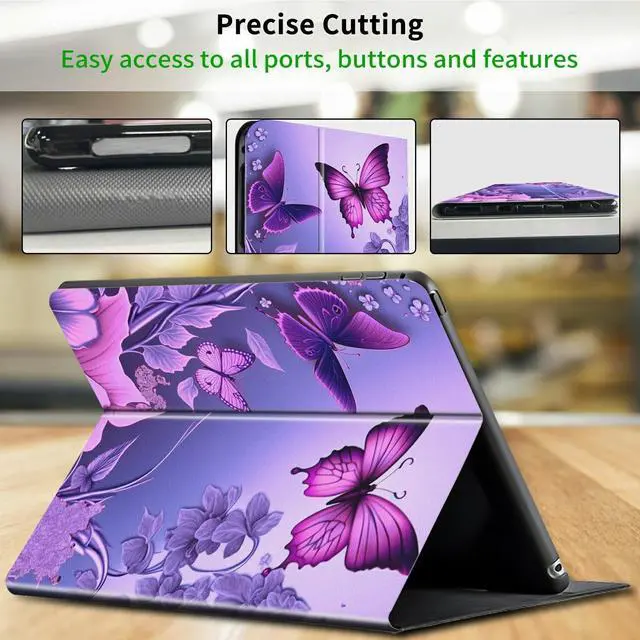 Case for All-New Kindle Paperwhite 12th Generation 7 inch 2024 & Kindle Colorsoft Signature Edition 2024 Lightweight Protective Smart Stand Cover with Auto Wake Sleep - Pink Flowers Purple Butterflies