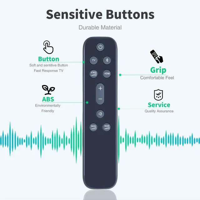 Perfect for family movie nights or everyday use! ^^ High-Performance Infrared TechnologyExperience reliable and responsive control with the advanced infrared technology Applicable to Remote Control. Designed for high performance, this remote ensures quick and accurate signal transmission, so you can effortlessly manage your audio settings, volume, and more. ^^ Durable BuildThe battery type Applicable to 9.1 Channel Sound Bar Speaker System JBLBAR913DBLKAM remote control is 2X 1.5V AAA alkaline battery, excluding battery. Its durable structure can withstand daily use, making it a reliable accessory for televisions. Say goodbye to frequent changes and enjoy uninterrupted entertainment.