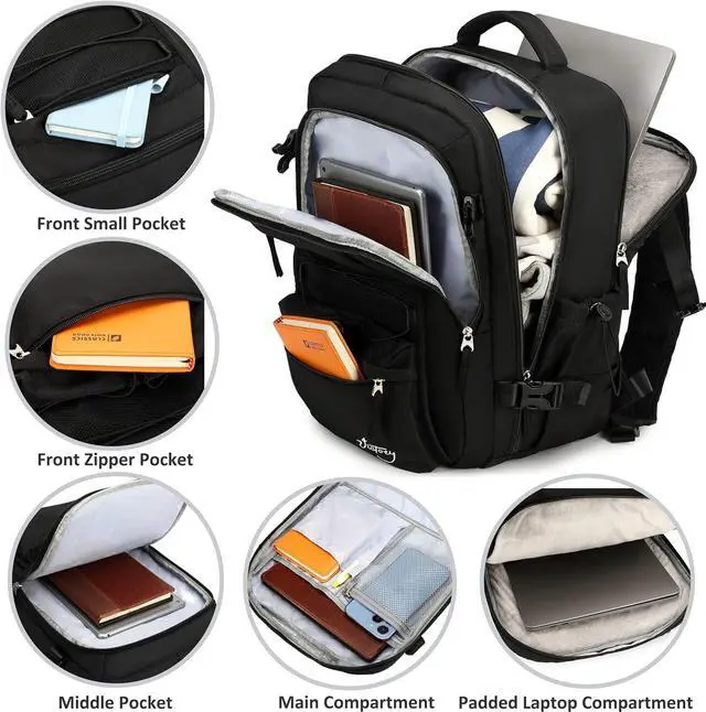 And it's hard, solid, and doesn't fade ^^ Separate Laptop Compartment Design & Practical Pockets One separated laptop padded compartment holds 15.6 Inch laptops as well as 16 Inch, 15 Inch 14 Inch and 13 Inch. The middle compartment is roomy for daily necessities, clothing, iPad, tech electronics accessories, A4 magazines, etc. The three front compartments make your small items organized and easier to find. Two side drawstring pockets is specifically designed for the water bottler or umbrella to let you use them more convenient ^^ Anti Theft Multifunctional Backpack A luggage strap allows the back pack fit on luggage/suitcase, slide over the luggage upright handle tube for easier carrying.