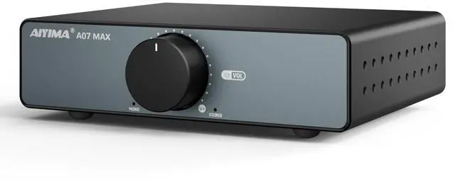300W+300W Stereo Amplifier modeDual function switchable Stereo/Mono 300W/600W amplifier. AIYIMA A07 MAX Power Amplifier can use as a 2 Channel Audio Component amplifier for Passive Bookshelf Speakers Desktop Home Theater, the max output power up to 600Watts(300W *2 under@4 ohm), can drive 2-8 speakers, providing spacious and clean sound quality. Its compact size makes it suitable for a variety of applications, easily setting up your bookshelf/desktop/home theater. The AIYIMA A07 Max is the best match on the market for different types of speakers and the sound quality of the A07 Max is excellent ^^ 600W Mono amplifier Home Audio modeA07 Max audio amplifier with innovative bridge design, just need to flip the function switch at the bottom of the machine, you can easily set a 600W mono bridgeable amplifier, The A07 MAX Power amp with 3.5 mm AUX line output to next A07 MAX (Active device) to build your high-power dual-channel system, to maximize your pursuit of audio amplifier power.