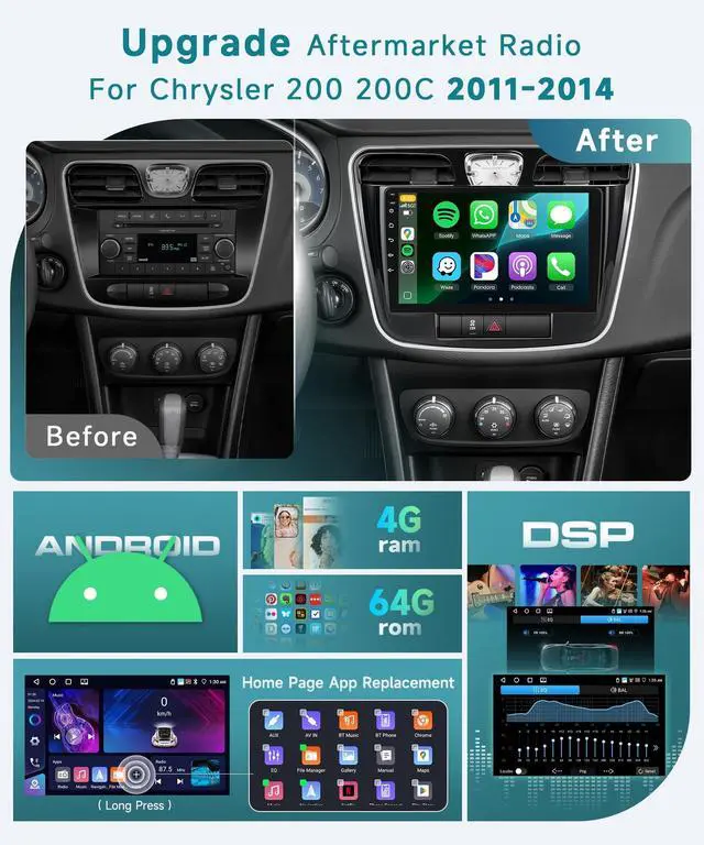 Camera & SWC: This Chrysler 200 car radio includes various UI desktop themes, long-press on the blank space of the homepage to change at will. Chrysler 200 carplay radio with AHD night vision reversing camera supports rear camera video input, allowing you to reverse more efficiently easy. Supports steering wheel control, allowing you to control your car radio through the steering wheel buttons.