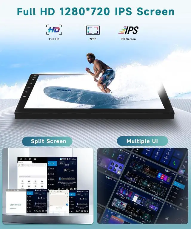 & FM/RDS & DSP/32 EQ: Bluetooth 5.0 processes faster, more stable and smoother. Support Bluetooth phonebook, hands-free call, music playback. And there are 18 preset radio station, you can listen to real-time traffic, news broadcasts, etc. DSP 32 EQ audio providing you with the best tuning enhancements and customizing your music style. ^^ Wireless Carplay & Android Auto &