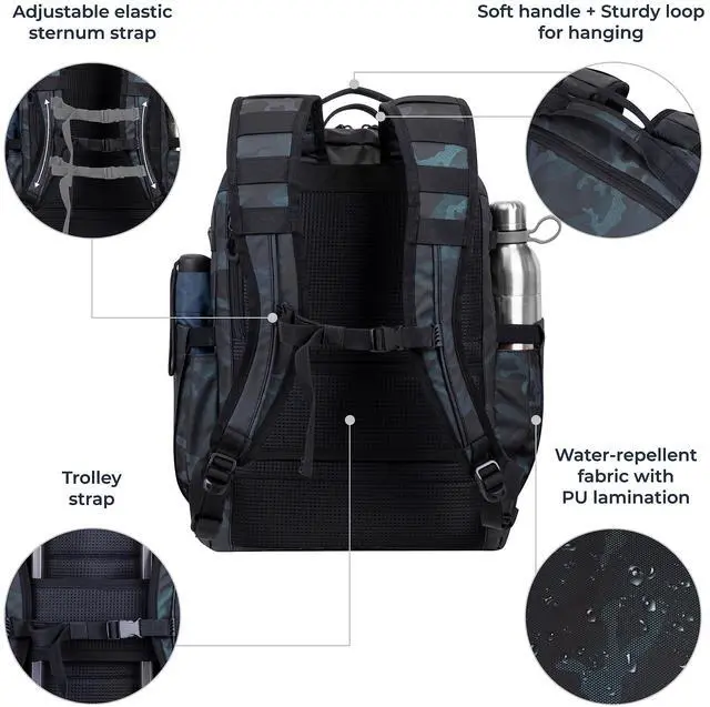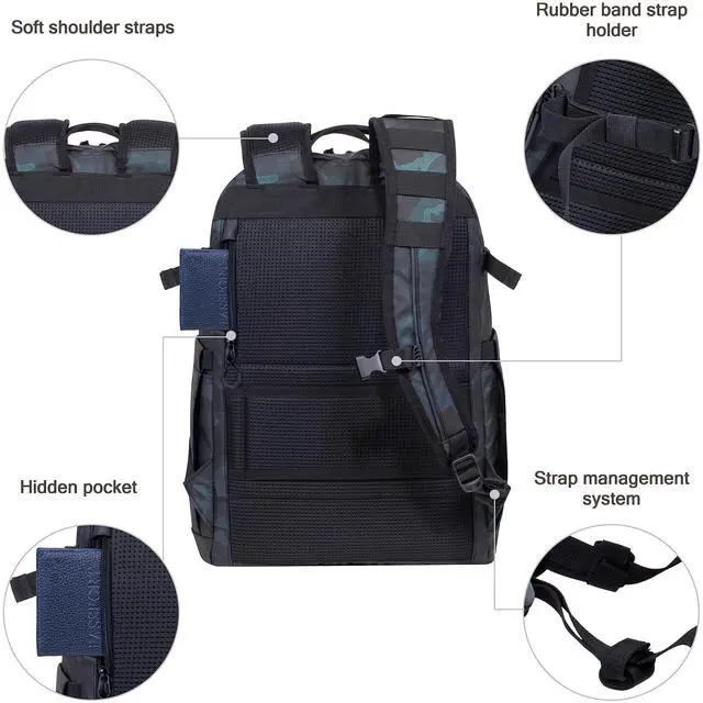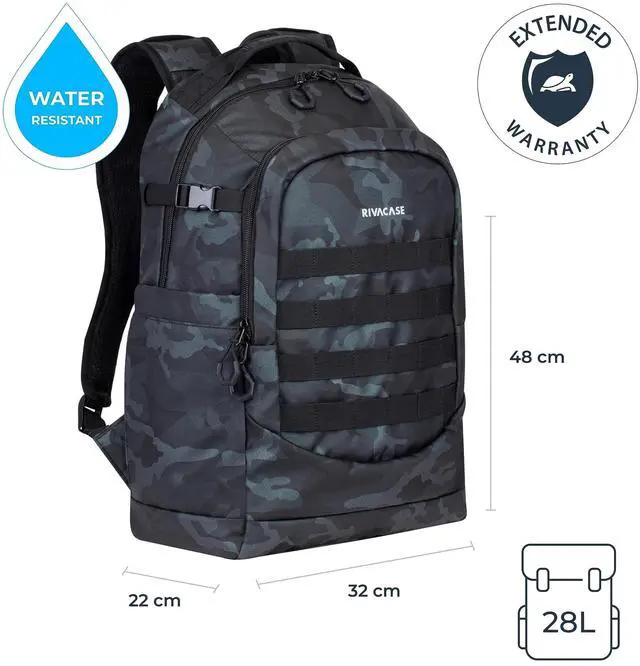 DescriptionRIVACASE Backpack 28L for Laptop up to 15.6 Inch - Waterproof Backpack - School Backpack for Teenagers - School Bag for Boys and Girls - Travel Backpack for Sports and Work (Navy Camo)