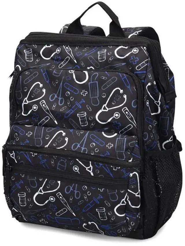 DescriptionNurse Mates The Ultimate Nursing Backpack Built for Healthcare Heroes Whether you're a nursing student hustling between classes or a seasoned professional on the go, the Ultimate Nursing Backpack by Nurse Mates is your all-in-one solution for staying organized, efficient, and prepared. Designed with your demanding schedule in mind, this backpack has everything you needand then some. Crafted from water- and stain-resistant fabric, this bag is built to withstand the rigors of daily use in any clinical or classroom setting. The durable, slip-resistant bottom and heavy-duty zippers provide long-lasting performance, while the large hinged main compartment offers easy access to your essentials.