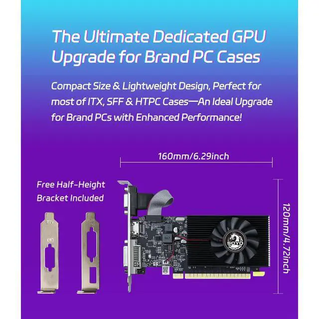 low-profile design: This half-height computer gpu features a low-profile design, which is specifically engineered to fit into space-constrained systems such as small form factor (SFF) PCs, slim desktop cases, or compact workstationseffectively addressing the issue of limited internal space while still delivering basic graphics performance for everyday tasks (e. g., office work, HD video playback) and light gaming. ^^ If the device doesn't display or work properly after installation, the following settings can be performed: Set