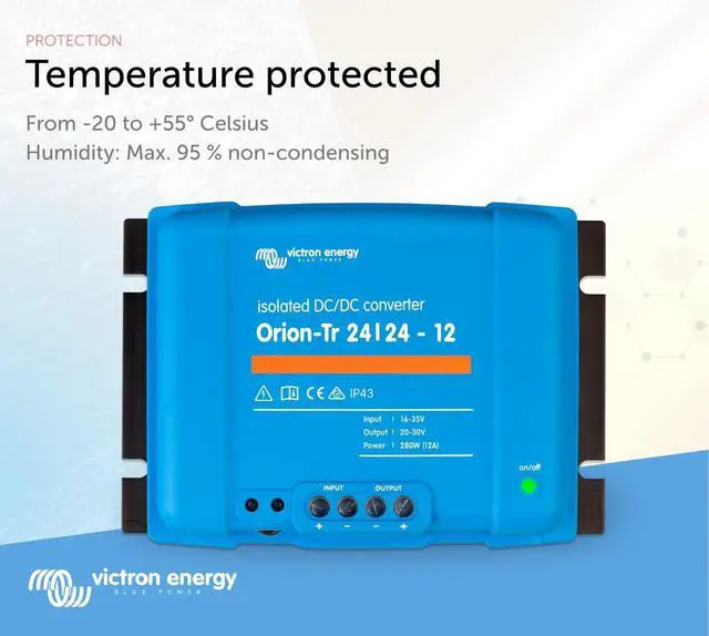 ^^ IP43 Protection: When installed correctly, the Orion-Tr DC-DC Converter provides splash-resistant IP43 protection, making it ideal for environments with occasional moisture exposure, without compromising reliability or performance ^^