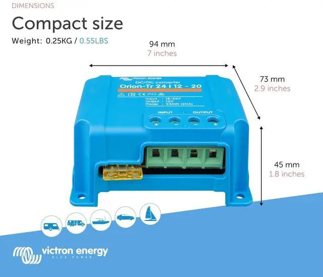 Easy Installation: The Victron DC to DC Converters are equipped with screw terminals, these converters allow for easy installation without the need for special tools.