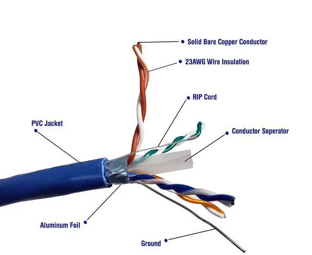The Mylar foil shielding protects your data as it travels through the four twisted pairs of 23 gauge solid copper wires by wrapping it in a thin metal sleeve thus keeping electrical interference from things like fluorescent lights and electrical lines found in a drop ceiling or inside walls at a minimum.