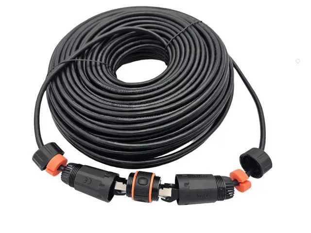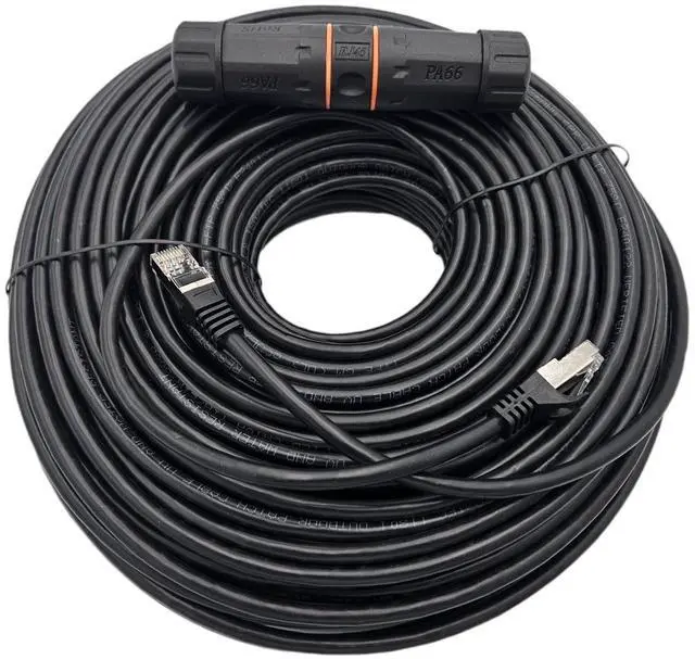 CAT6A Industrial Outdoor-Rated Shielded Ethernet Black-Cable Kit with Waterproof Coupler