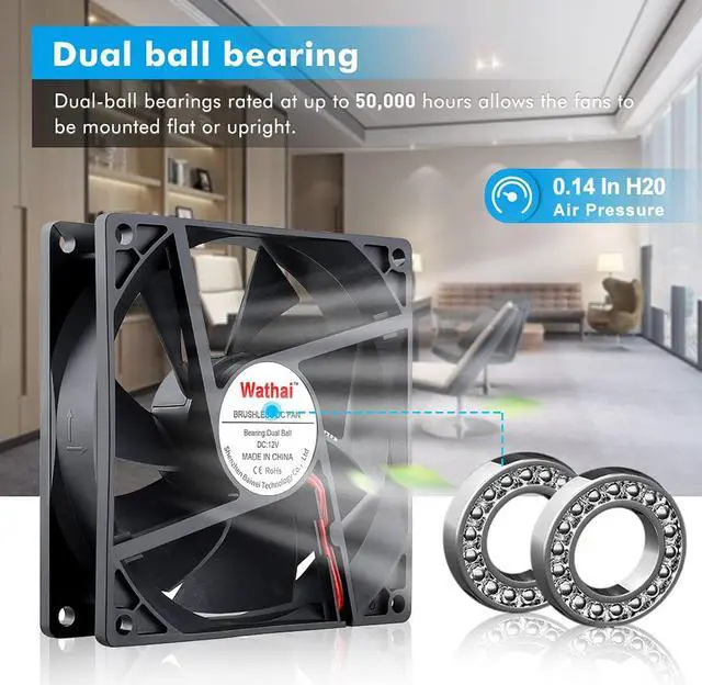 Dual Ball Long-lasting have a lifespan of 50, 000 hours and allows the fans to be laid flat or stand upright. For Cooling a Coleman thermoelectric cooler, Replacing OEM fans on a travel trailer.