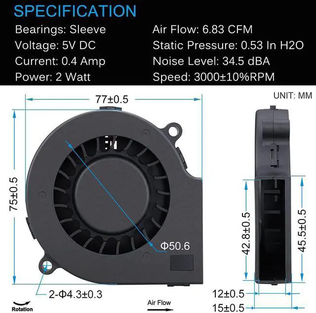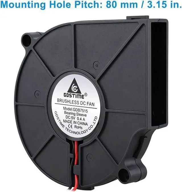 EASY TO INSTALL Blower Size: 75x75x15 mm( 2.95 x 2.95 x 0.59 in. );