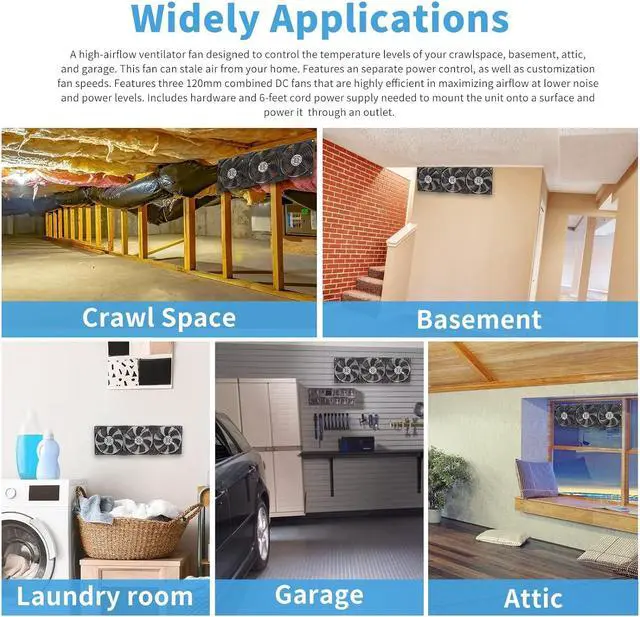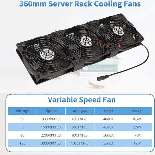 Wide ApplicationsThree 120mm fans powered by a wall-wart. its really easy to adjust their speed with a knob. it works great for DIY fan or as an additional cooling fan for your gaming needs, such as plant cabinet, Crawl space, Basement, Laundry room, Garage, Attic, RV refrigerator, X-box, ps4, Amplifier, kitchen window, server, humidifier, mushroom growing, sound system, etc.