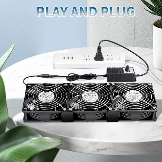 Speed: 3000 RPM x3. With its three 120mm fans, this gadget is perfect for cooling electronics and other devices, including those inside cabinets or server racks. You can easily adjust the fan speed to create the perfect airflow with minimal noise.