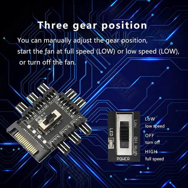 8 way without speed measurement and PWM function, you can manually adjust the gear position, start the fan at full speed (LOW) or low speed (LOW), or turn off the fan.