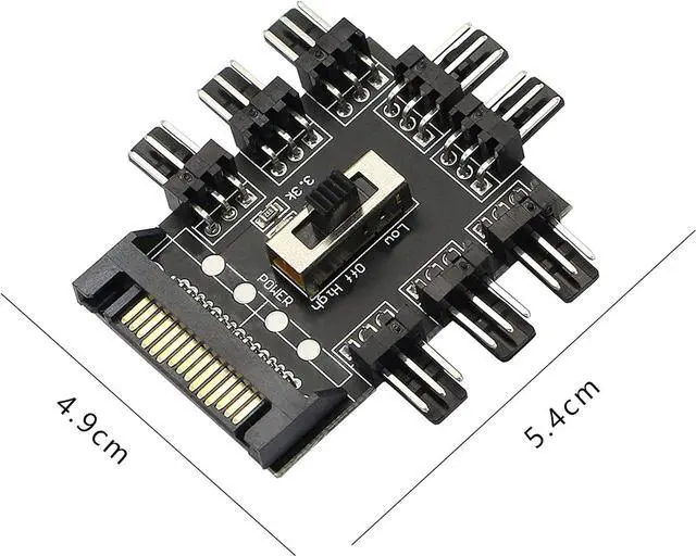 Suit for 12V 3Pin fan (8 channels). Using SATA interface. Support the fan operation at the same time, solve the lack of motherboard interface, and focus on processing the fan wire.