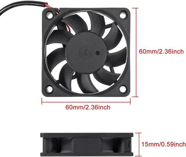 The fan 60x60x15 mm or 2.36 x 2.36 x 0.59 inches;