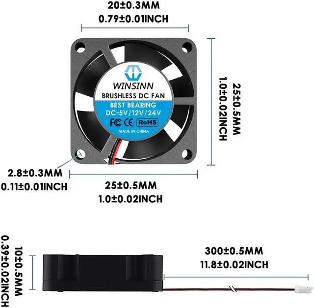 Connector & Line length: XH 2.54 11.8 in (300mm), Size: 25mm x 25mm x 10mm