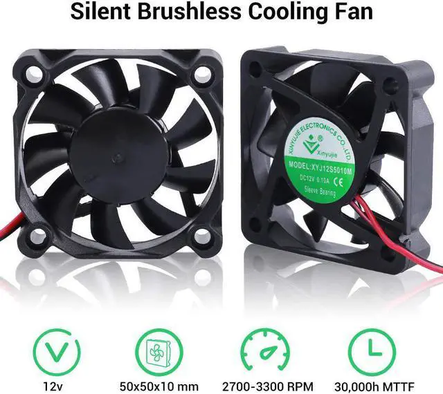 VersatileThis square frame fan boasts excellent airflow and pressure properties, making it an ideal replacement for noisy or broken 12V 5cm fans in a variety of devices such as 3D printers, DVD players, DVRs, switches, and network/storage equipment. Cooling fans is also suitable for use in water cooling radiators or as case fans.