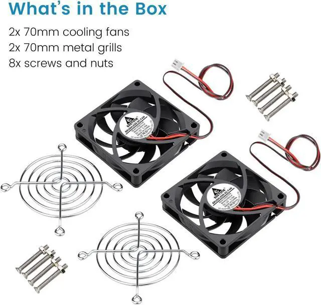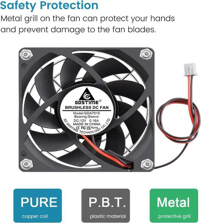 GDSTIME 70mm x 70mm x 15mm 12v Brushless DC Cooling Fan 2Pin 2-Pack