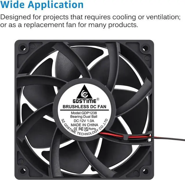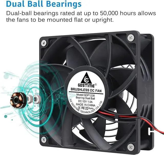 GDSTIME Dual Ball Bearing Big Air Flow High Speed Preesure 4500rpm 12038 12cm 120mm X 38mm 5 Inch 12v Dc Cooling Fan