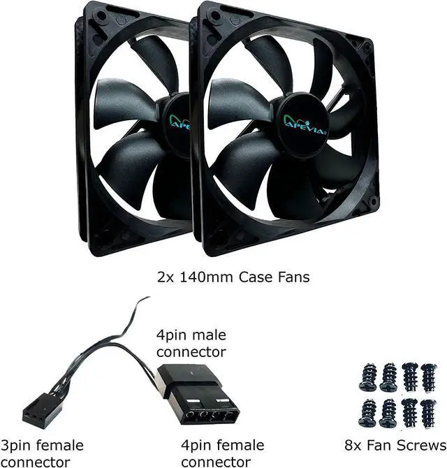 Apevia 140mm 4pin Molex & 3pin Motherboard Ultra Silent Black Case Fan.