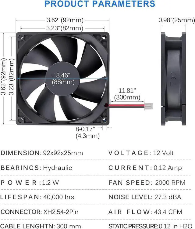 Air flow: 43.4CFM; Noise: 27.3 dBA