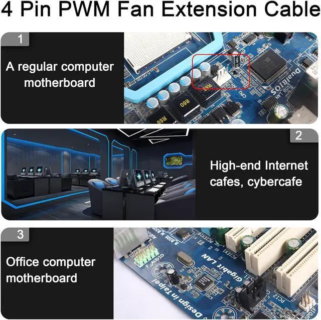 Say goodbye to heat4 pin PWM fan extension cable is used for an external cooling fan to better assist the computer motherboard to dissipate heat, protect the computer and maintain its stable performance.