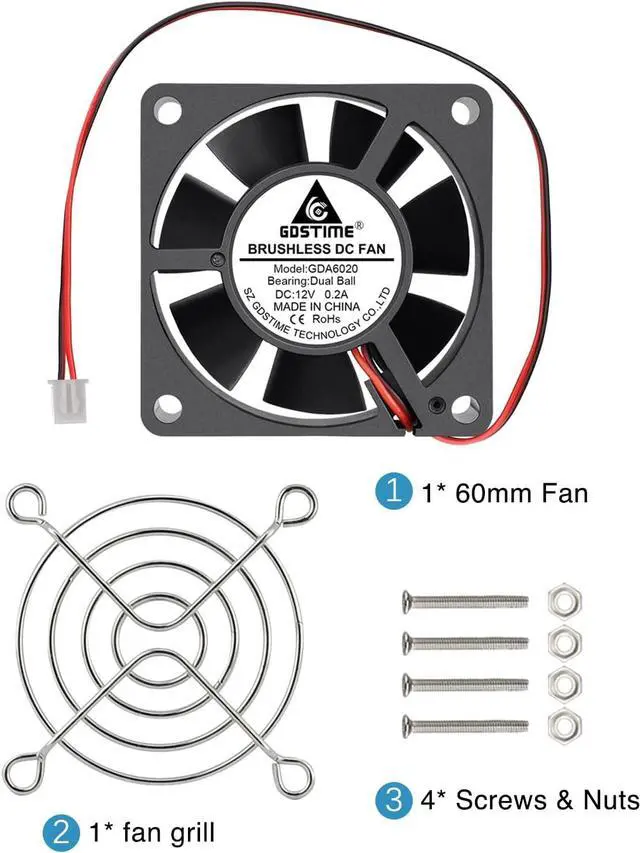 1-year WarrantyIncludes a 60mm x 20mm 2-pin fan, one 60mm metal protective fan grill, and mounting screw set