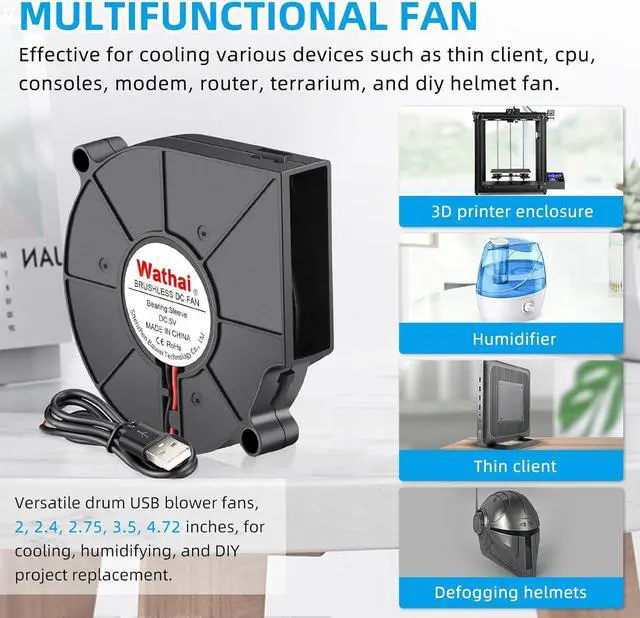 Helmet FanSave Power. Stay Cool with Wathai Hard Hat Fan Cooling Kit. USB computer fan is energy-efficient, great for cabinet fans, aquarium cooling, and hard hats with fans.