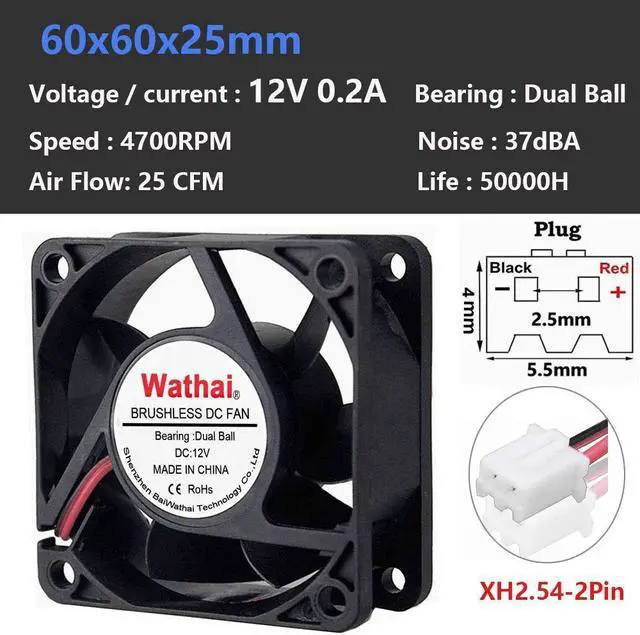 60mm Fan60 x 60 x 25 mm ( 2.36 x 2.36 x 1 in. ) |