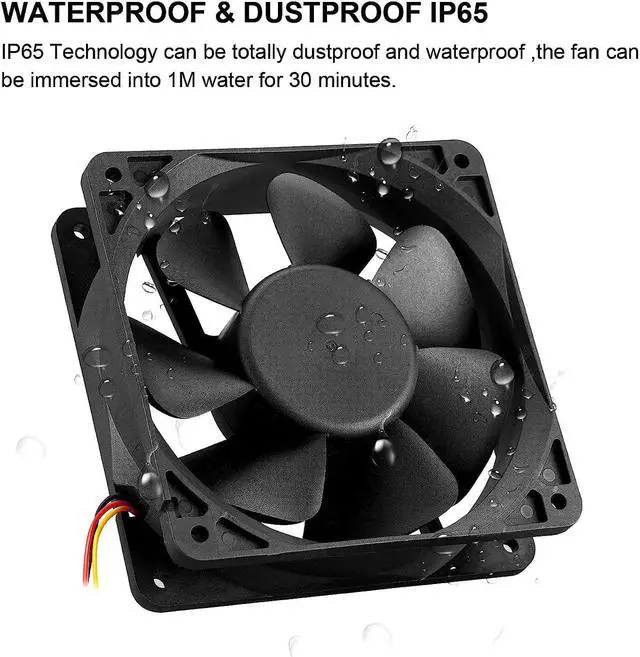 IP65 WATERPROOF: 120mm 12V waterproof fan with IP65 design technology can be totally dustproof and waterproof. What is