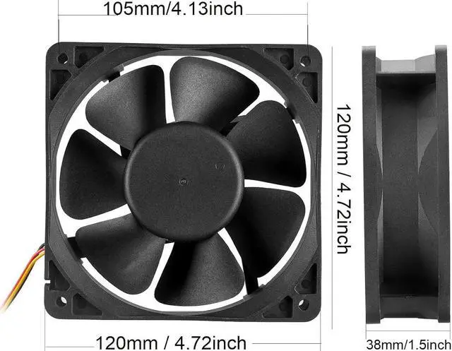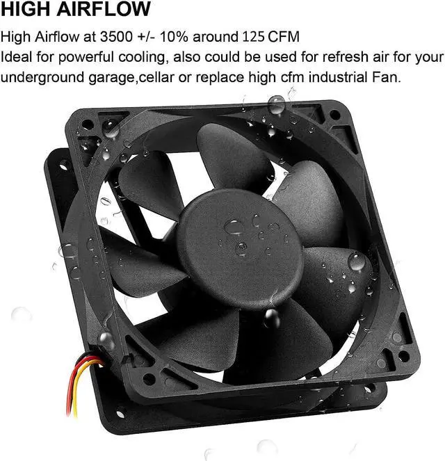 HIGH AIRFLOW 3500RPM: 120mm high speed fan at 3500RM airflow 125.2CFM noise 51dBA, ideal for strong and powerful cooling needs or replacemment of high cfm industrial cooling fan.