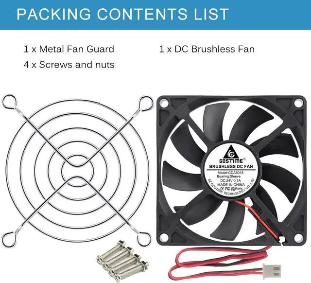 Package include: 1piece fan include fan grill and mounting screws & nuts