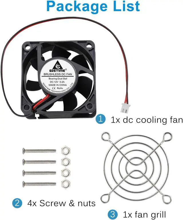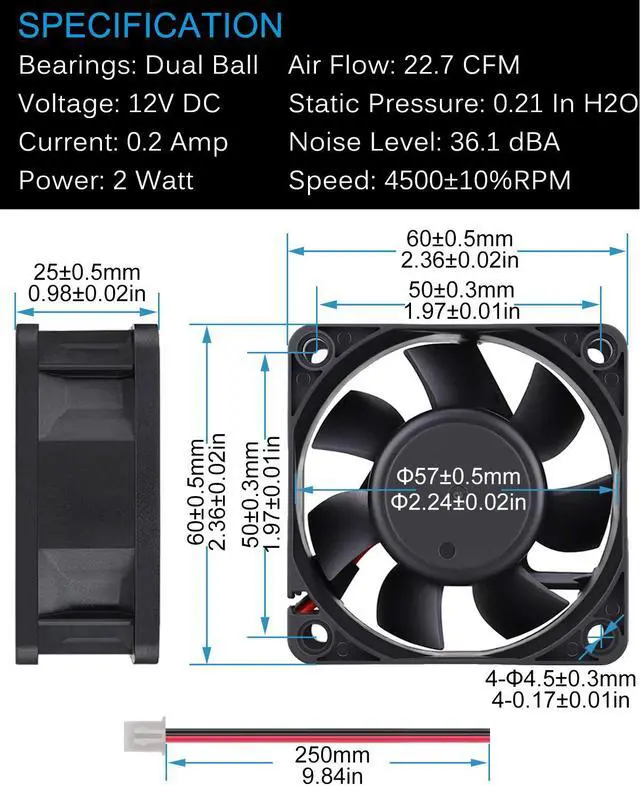 EASY INSTALLED Fan Size: 60mm L x 60mm W x25mm H, Mounting