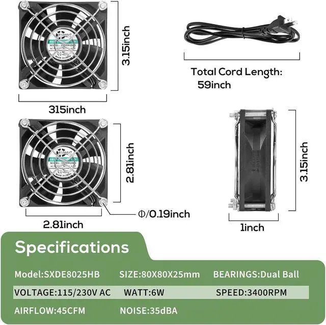 Cost-Effective Solution: The SXDOOL 80mm EC fan is a reliable and cost-effective cooling solution for electronics, servers, and routers. Its durable construction and advanced design provide consistent airflow and minimal noise, ensuring long-lasting performance.