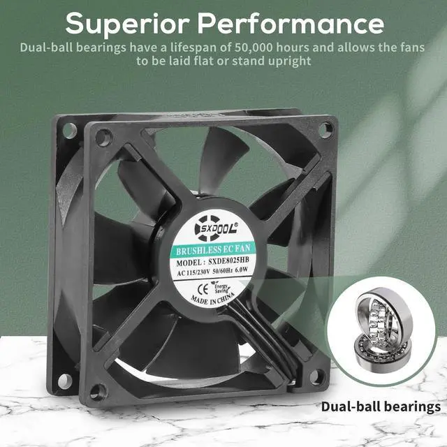 High-Performance Cooling: The SXDOOL 80mm EC fan delivers powerful and efficient cooling for demanding applications. Its advanced ball bearing technology and optimized airflow design provide high performance and reliability.