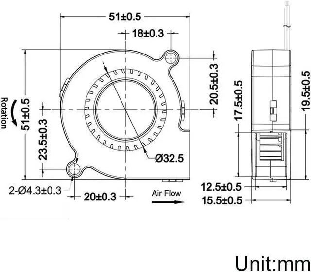 Packing List: 2 x 50mm Blower Fan 12v - Dual Ball Bearing, Connector