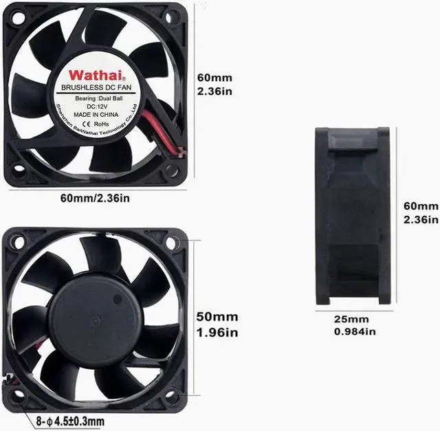 Dimension: 60mm (L) x 60mm (W) x 25mm (H) / 2.37 x 2.37 x 0.98 in. per fan