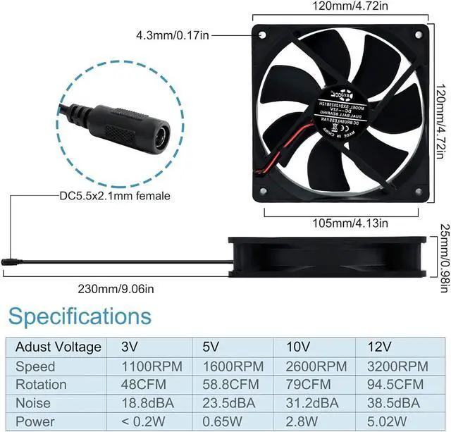 SPEED ADJUSTABLE: With the variable speed controller, you can adjust the fan speed easily, optimal it to suitable airflow levels and noise; Maximum speed 3200 RPM